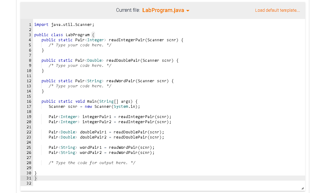 Solved 11 6 Lab Pairs Generic Classes Complete Pair Java Chegg Com